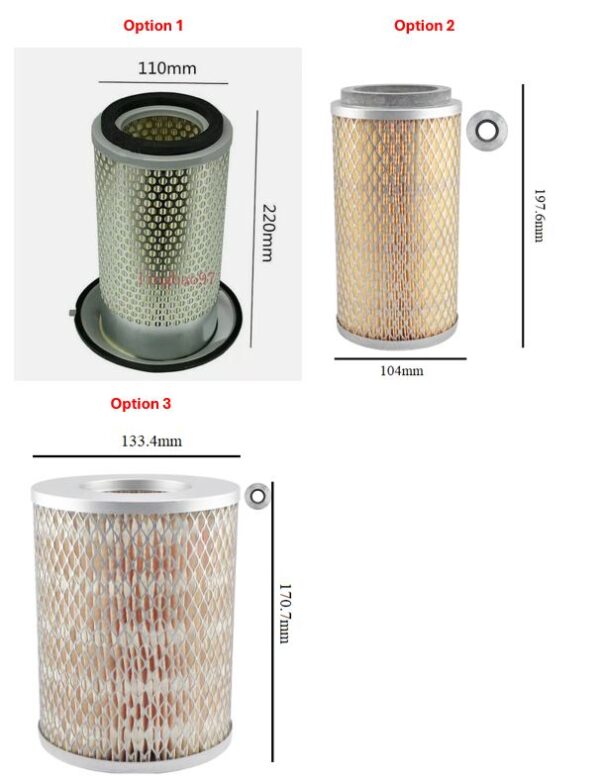 Includes Oil filter, Air filter and Fuel filter. Please advise when ordering which air filter you require as there are 3 options available (as shown in second image).